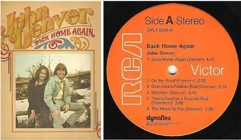Released as a single from his album of the same name in 1974, “Back Home Again” peaked at #5 on the Billboard Hot 100 chart in November of that year. It was Denver’s fifth Top 10 hit on the pop chart. In addition, the song topped both the adult contemporary chart (for two weeks) as well as the country music chart (for one week). The single was certified a gold record by the RIAA. The song won a CMA Award for Denver in 1975 in the category “Song of the Year”; he was also named “Entertainer of the Year” at the same ceremony, prompting country pop singer Charlie Rich to light the envelope on fire after reading that Denver had won in an apparent insult to Denver’s musical style and image.